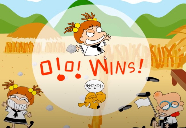 두 캐릭터인 왕따 와 밍밍 캐릭터 들로 포트리스를 펼치는
