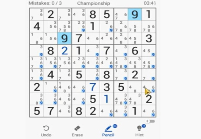 어찌 보면 쉬울수 있지만 실제 로 플레이 해보시면 쉽지 않다는것을 느끼실수 있는 스도쿠 99 입니다.