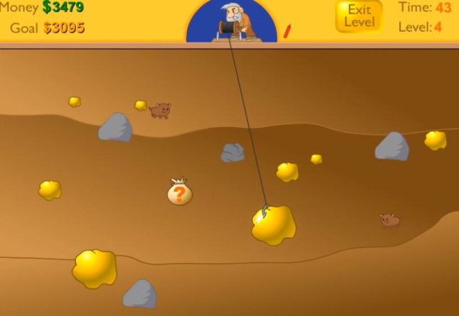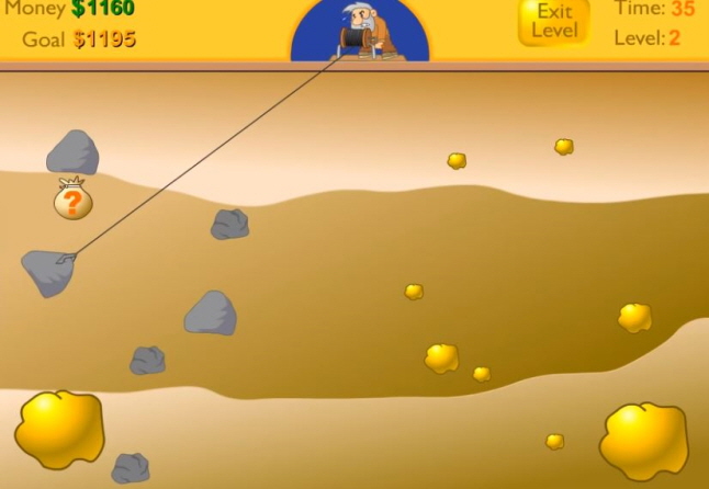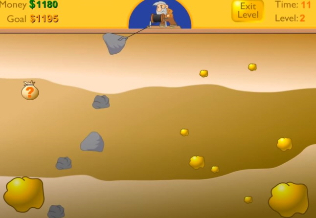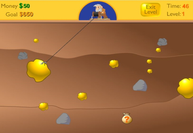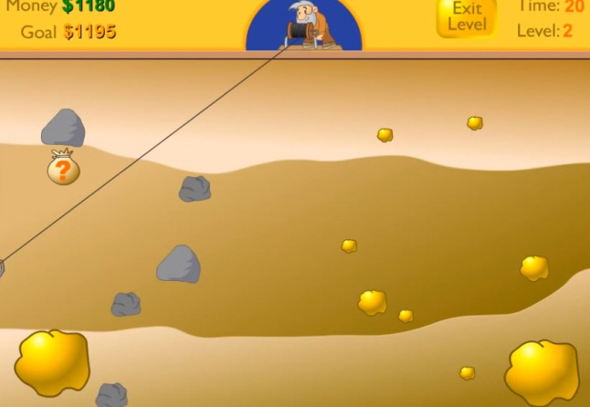 할아버지가 갈고리를 이용하여 광석에 있는 금캐기 를 하시면