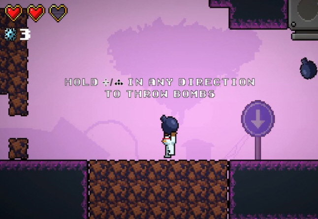 주변에 나오는 폭탄을 잡아 던져 적들을 제압하거나 막힌 벽을 뚜는데 사용하시면 되는데요