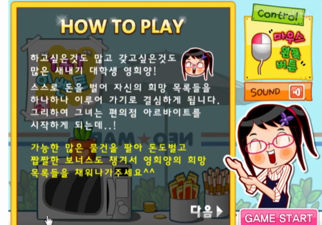 기본 스토리의 경우 새내기 대학생 영희양이 스스로 돈을