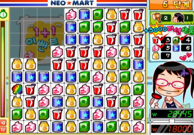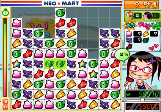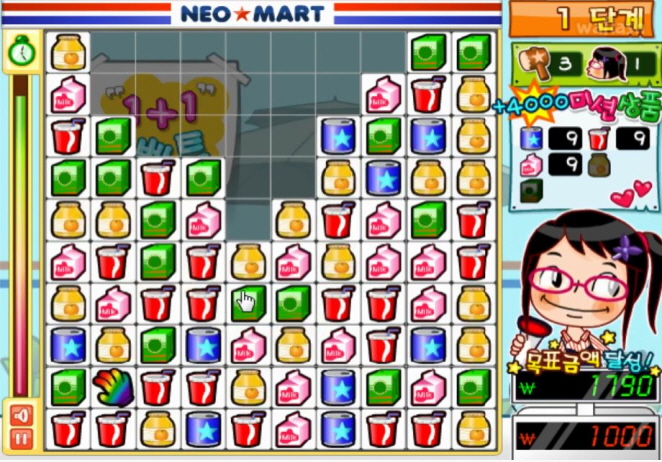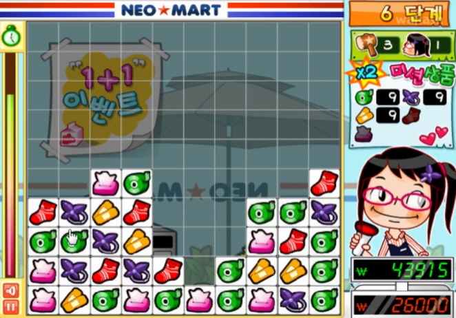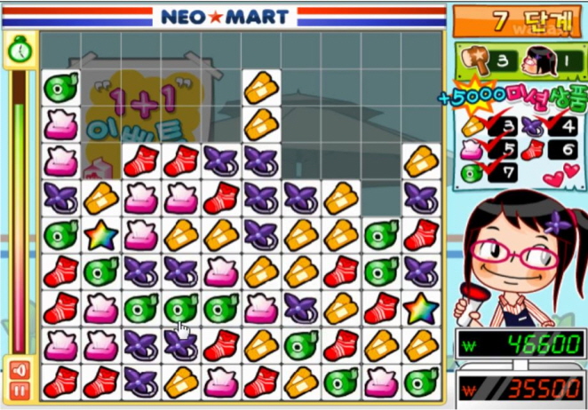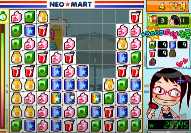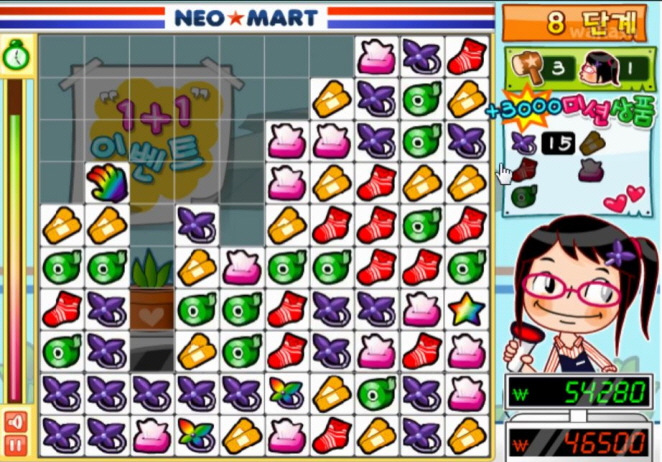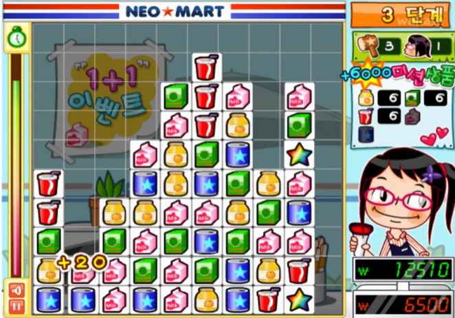 게임 제목과 다르게 마트에서 물건을 사고 팔고 하는게 아니라 클릭을 통해 퍼즐을 제거 하는 방식 인데요