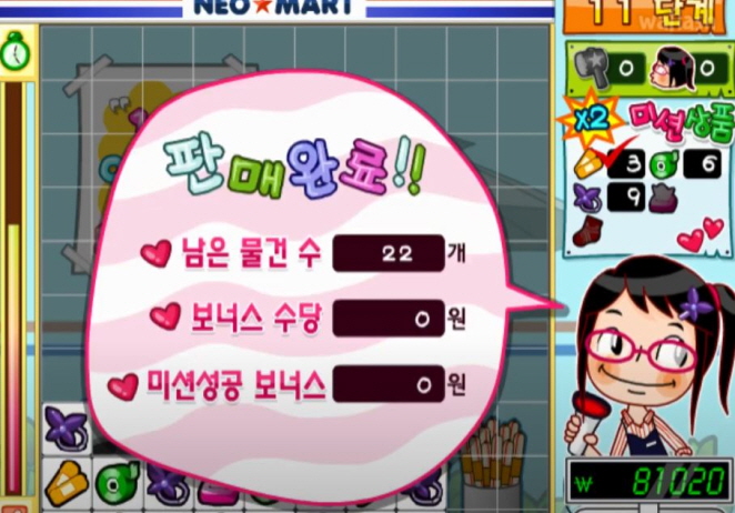 남김없이 모두 판매한 경우엔 퍼펙트 보너스와 함께 영희양 아이템을 얻을수 있습니다.