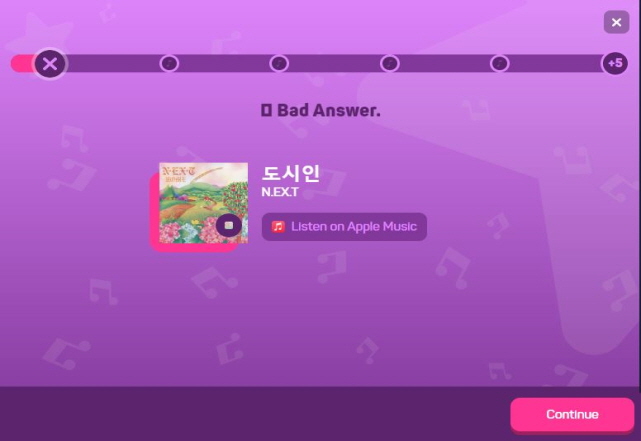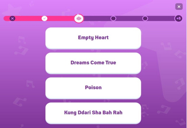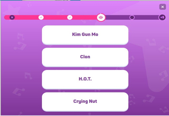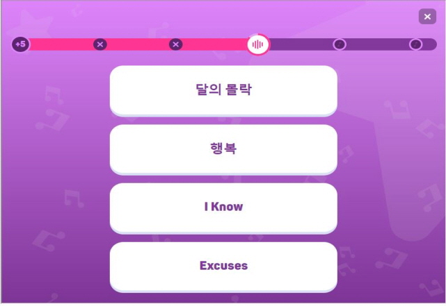 K팝 장르를 선택하여 플레이 해봤지만 아이돌 노래가 워낙 많다 보니 맞추기가 쉽지 않은것 같습니다.