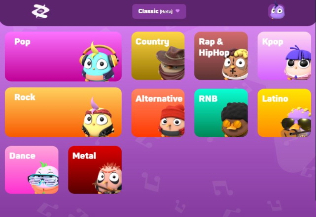 K팝.댄스.힙합.팝송.락 등 장르중에 하나를 선택하여 전세계 사람들과 맞추는 io 장르 인데요