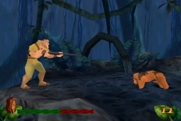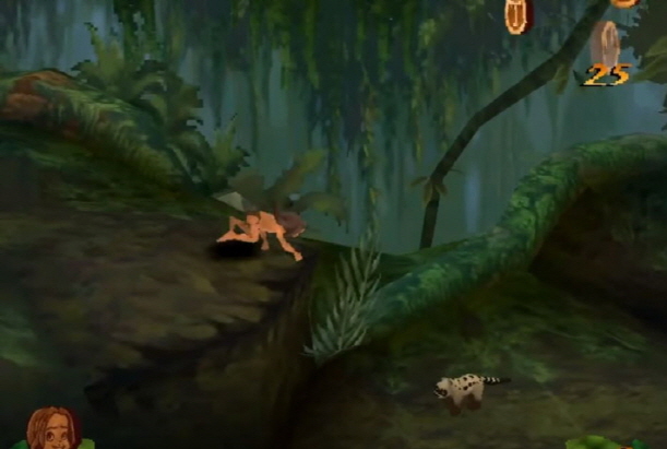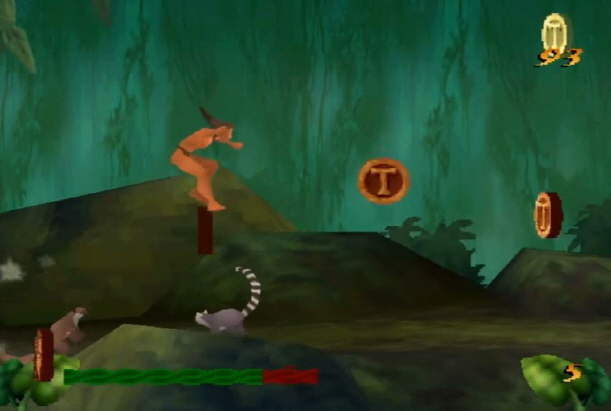 초반에는 어릴적 타잔 모습으로 진행하다가 후반 스테이지 부터는 성인으로 플레이어 할수 있습니다.