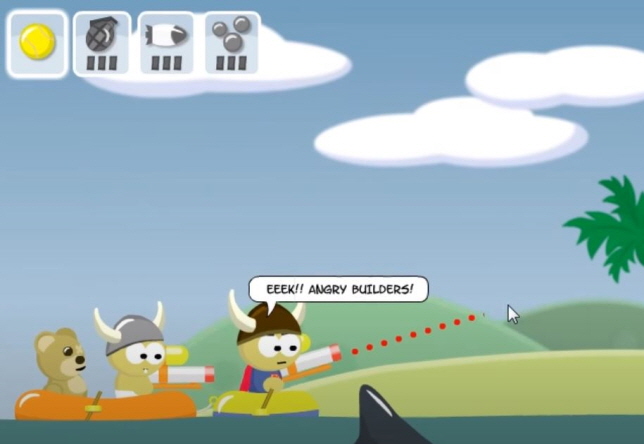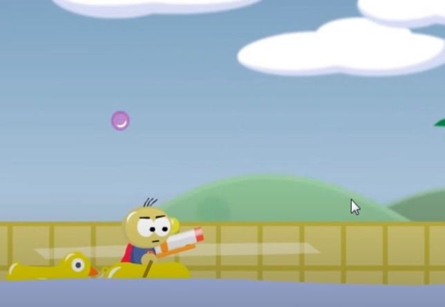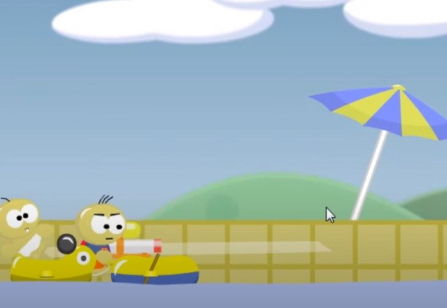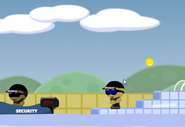 게이지와 각도를 조절하여 적을 조준하여 상대방을 맞춰서 떨어지게
