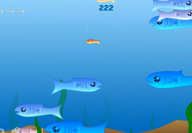 자기보다 큰 물고기에 닿게 되면 패배할수 있기 때문에 최대한 큰 물고기는
