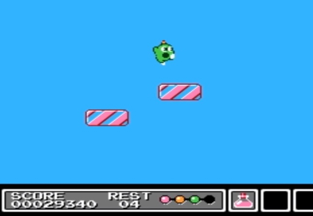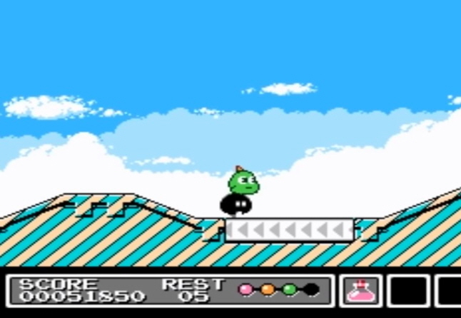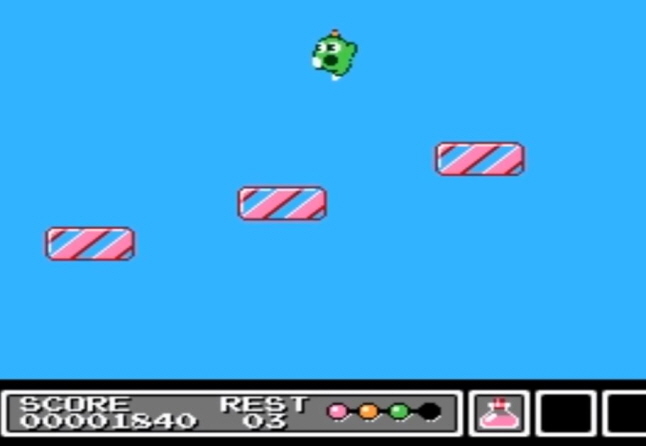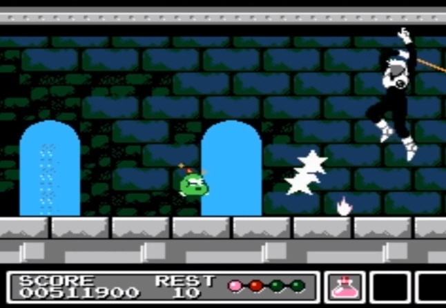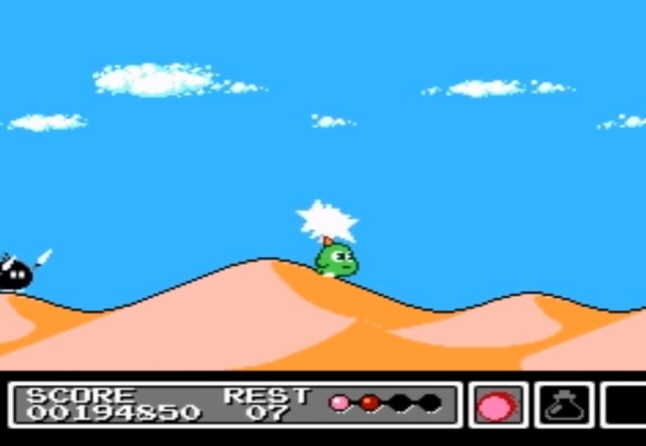기믹 이라는 Gimmick 라는 작품으로써 1992년 에 패미콤에서 발매 하였으며 선소프트의 게임 인데요