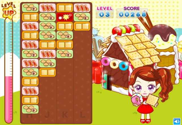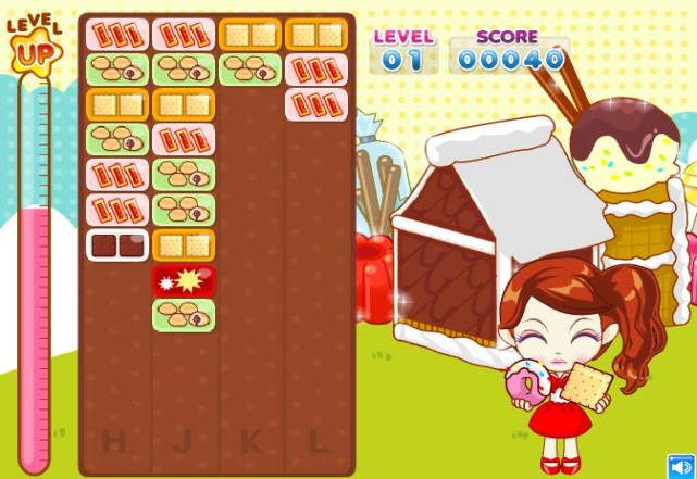 과자 접시를 없애지 못해 게임판 맨 아래 까지 쌓이게 되면 게임이 오버가 되는데요