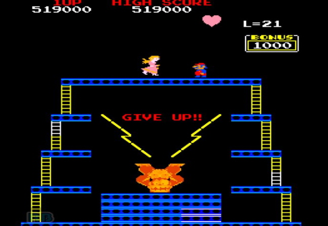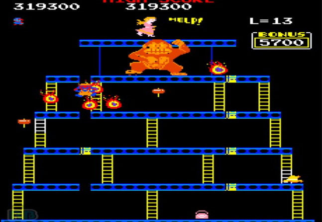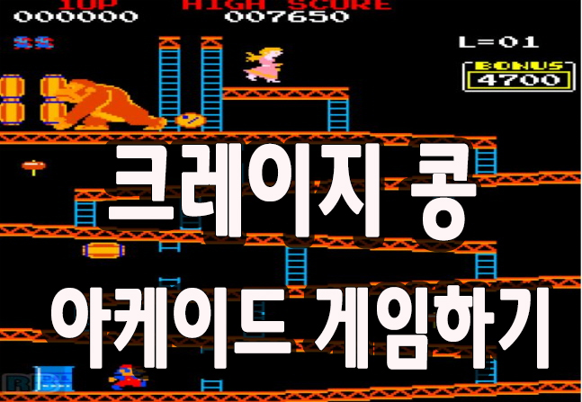 이를 피해가며 해당지점까지 올라 가시면 되는 방식의 크레이지 콩 몽키 동키 아케이드 게임 입니다.