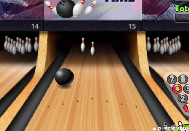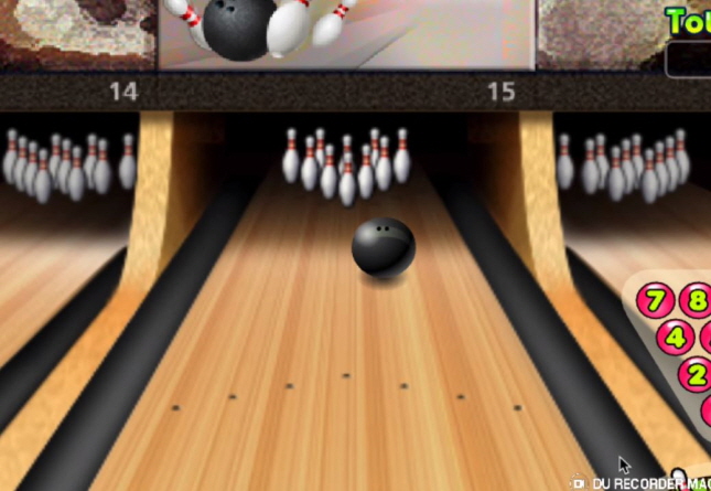 게임방법은 볼링공을 굴려 10개의 핀을 모두 쓰러뜨리면